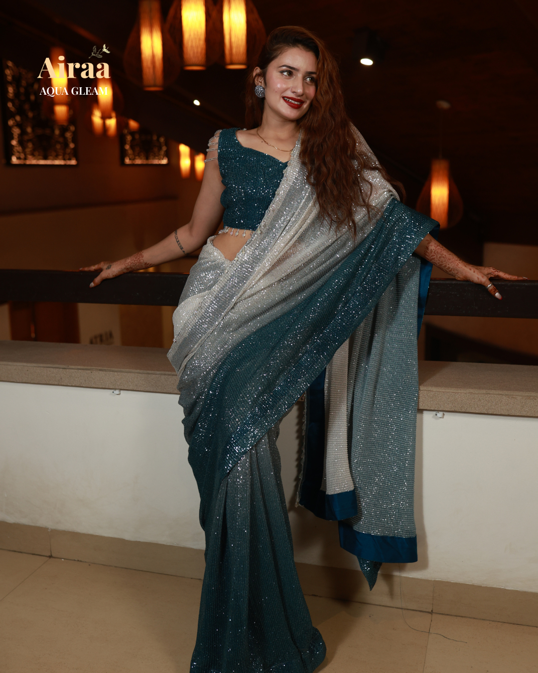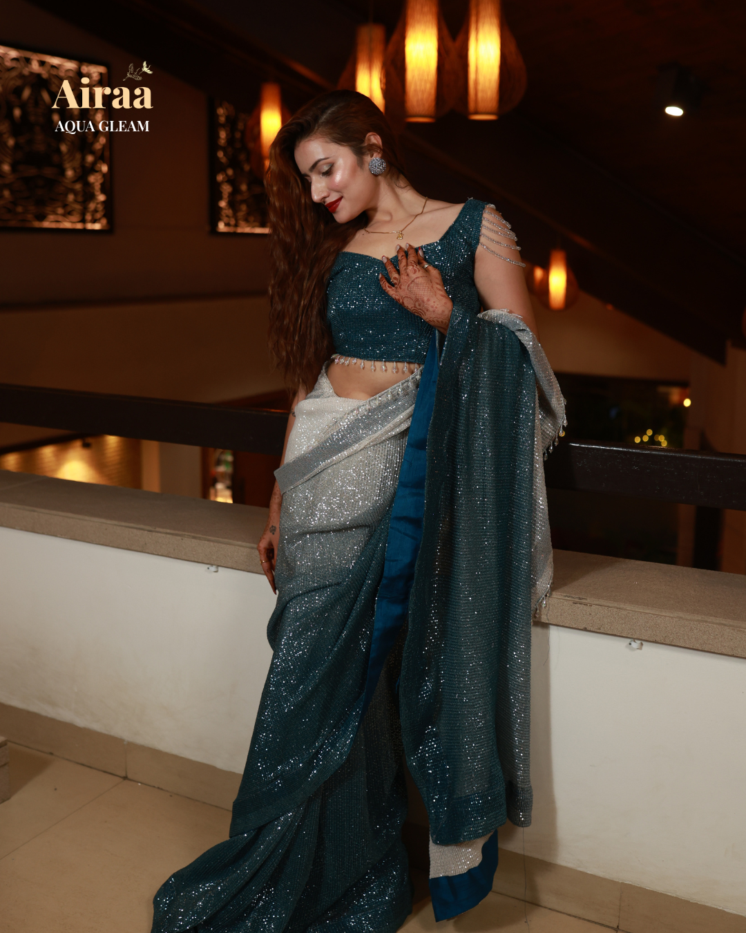 Perfect for cocktail soirées and elegant evening affairs, Aqua Gleam celebrates the woman who carries herself like water — calm, powerful, and endlessly graceful.
