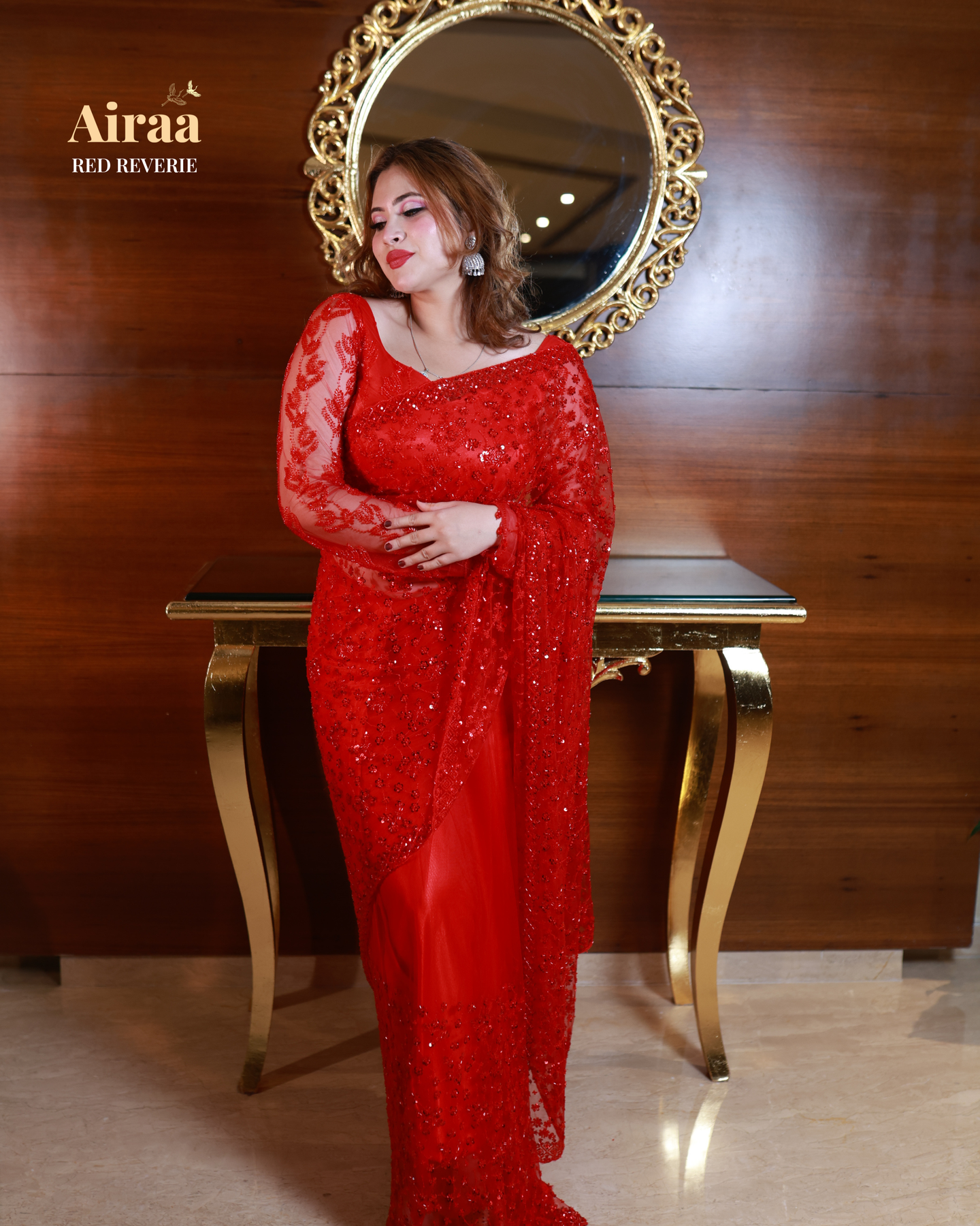 Designed for the woman who embraces confidence, charm, and sophistication — Red Reverie is more than a saree; it’s an emotion stitched in luxury.