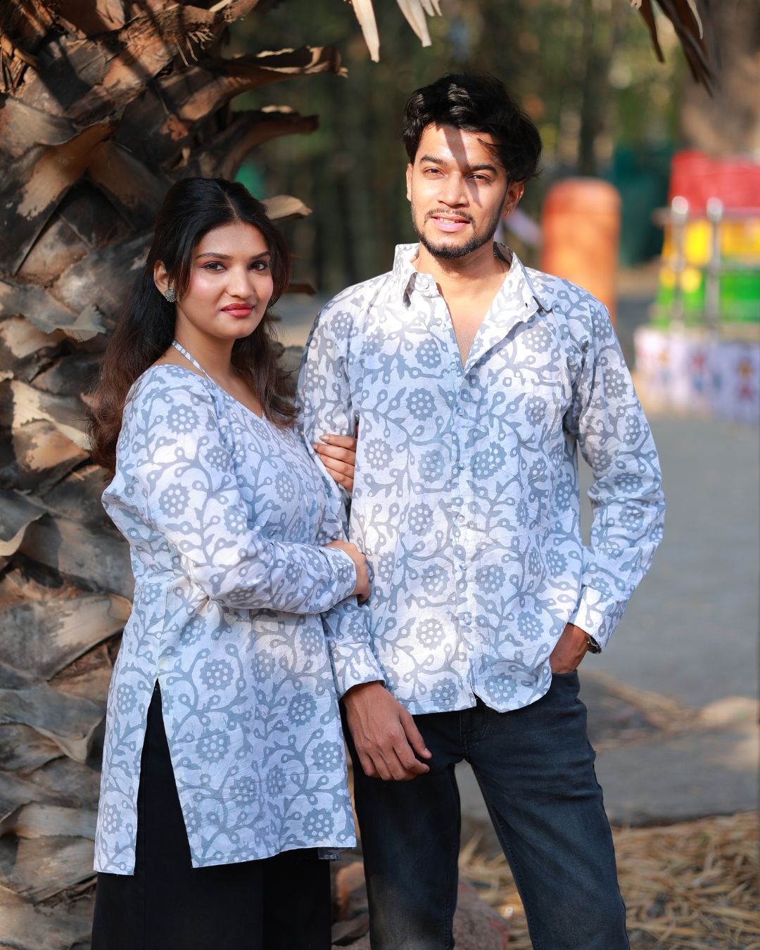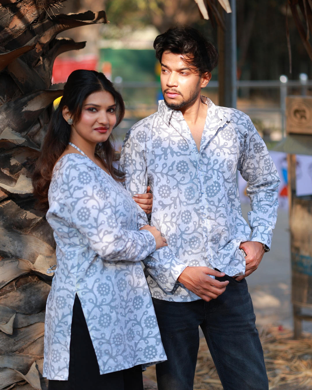 Step into effortless elegance with Neel Saath, a coordinated couple outfit that blends modern comfort with timeless prints. Designed in soothing grey-blue tones with delicate heritage-inspired patterns, this set reflects understated sophistication and everyday charm.