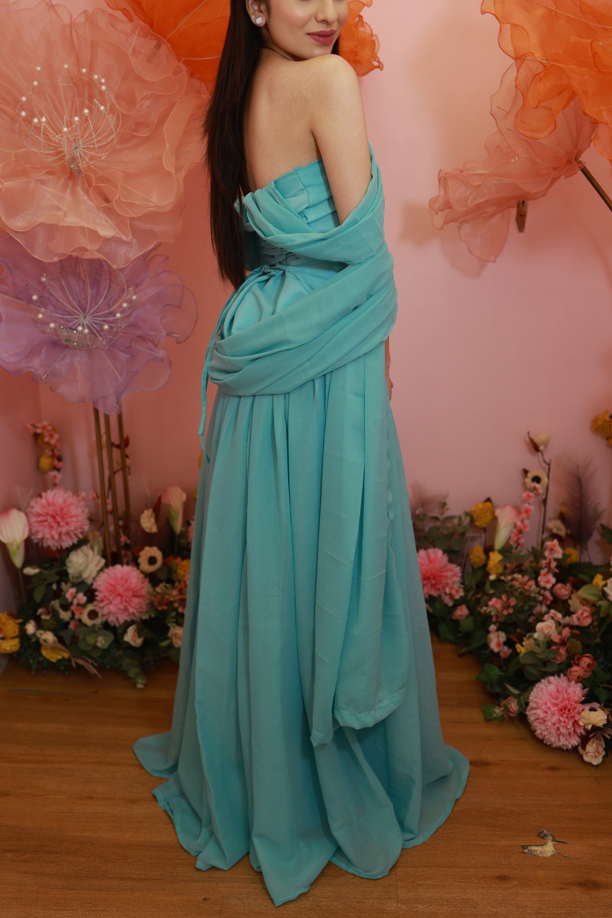 A dress that feels like spring in motion — Aqua Blossom is crafted for the woman who adores softness, serenity, and timeless beauty.