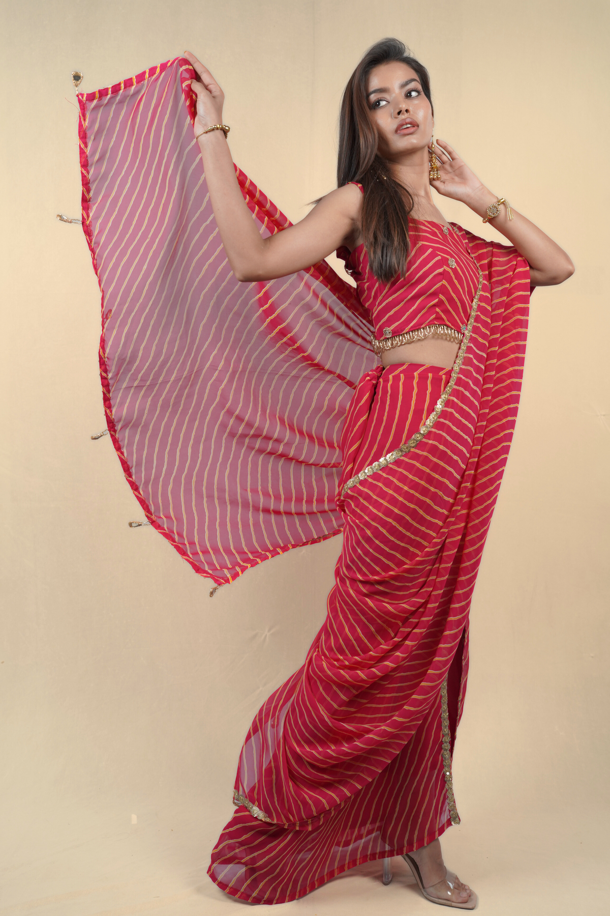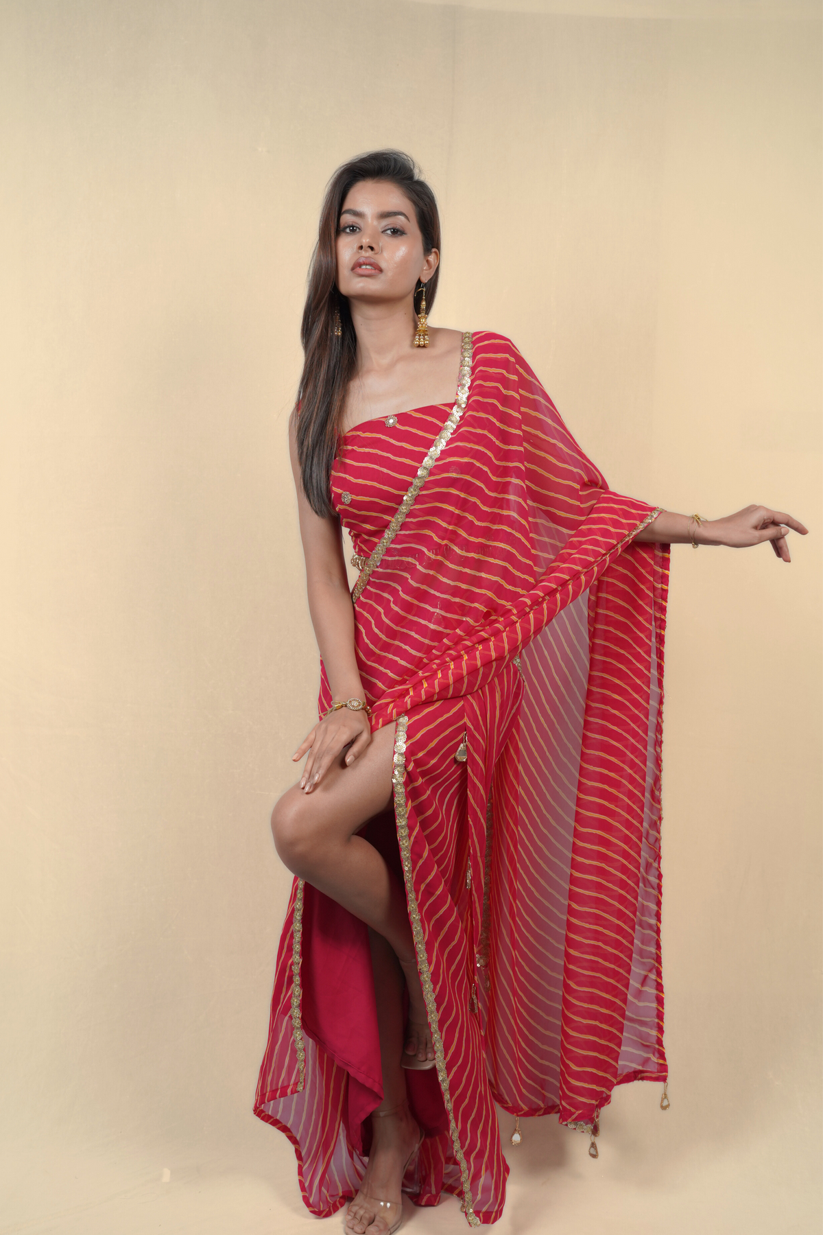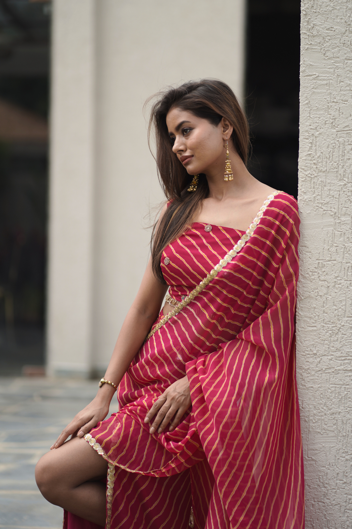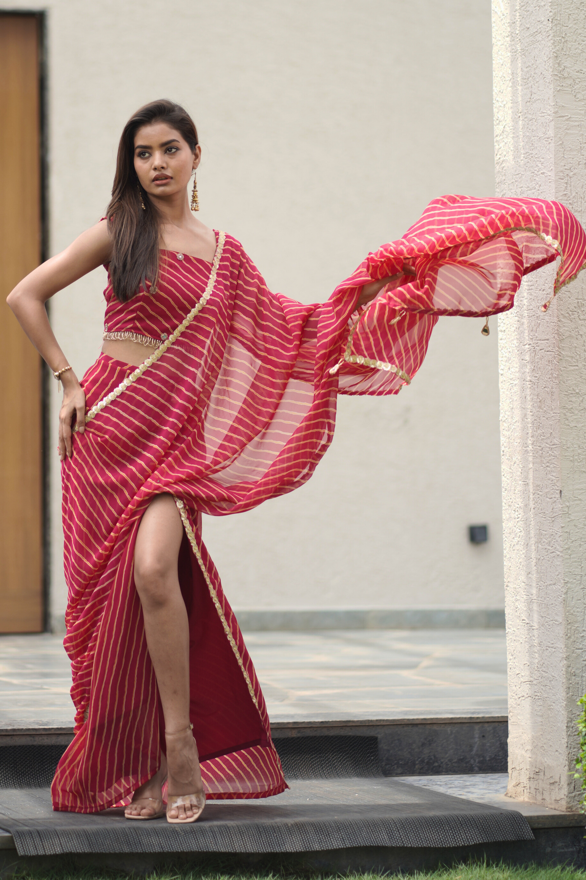 The Coastal Waves Lehriya Lehenga Set combines intricate shell embellishments with traditional lehriya dyeing, capturing the essence of Rajasthani craftsmanship infused with coastal charm. Its lightweight fabric and elegant design make it an ideal choice for daytime weddings and lively sangeet celebrations, offering both comfort and timeless style.