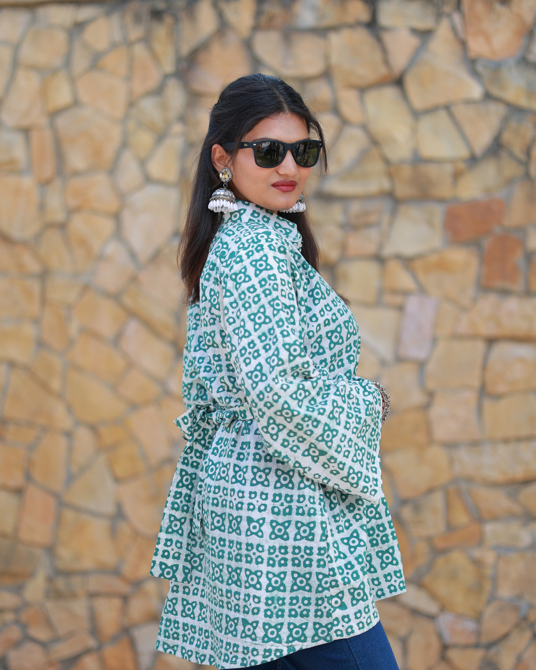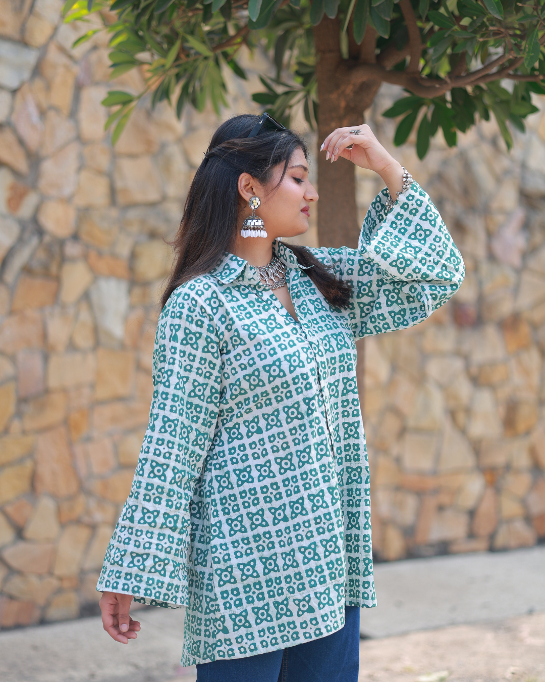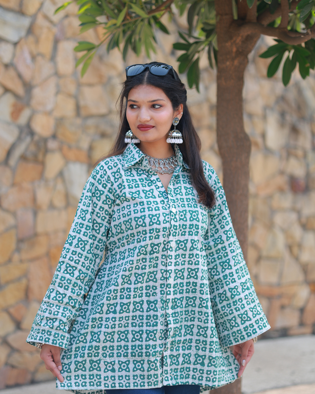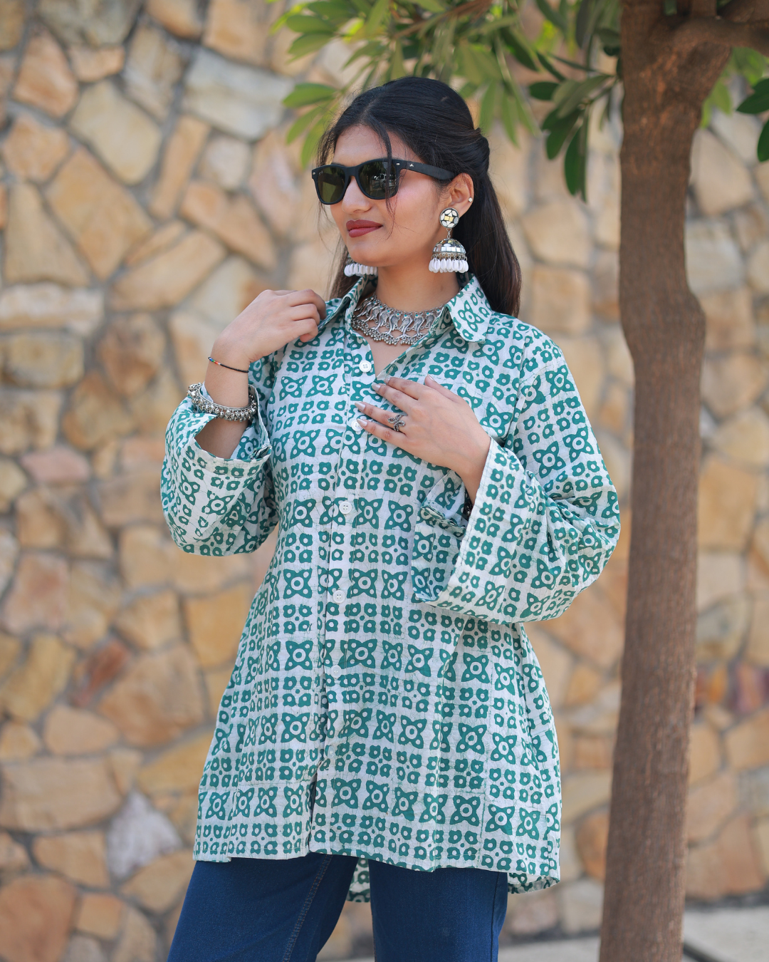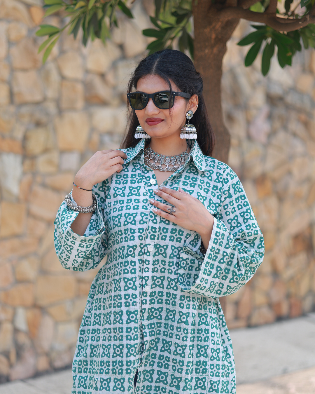 Fresh, effortless, and rooted in artisanal inspiration, the Mehreen Printed Shirt brings together traditional pattern aesthetics with a relaxed contemporary silhouette. Designed in a refreshing green and ivory palette, this shirt reflects the charm of heritage-inspired prints while offering a versatile everyday wardrobe piece.