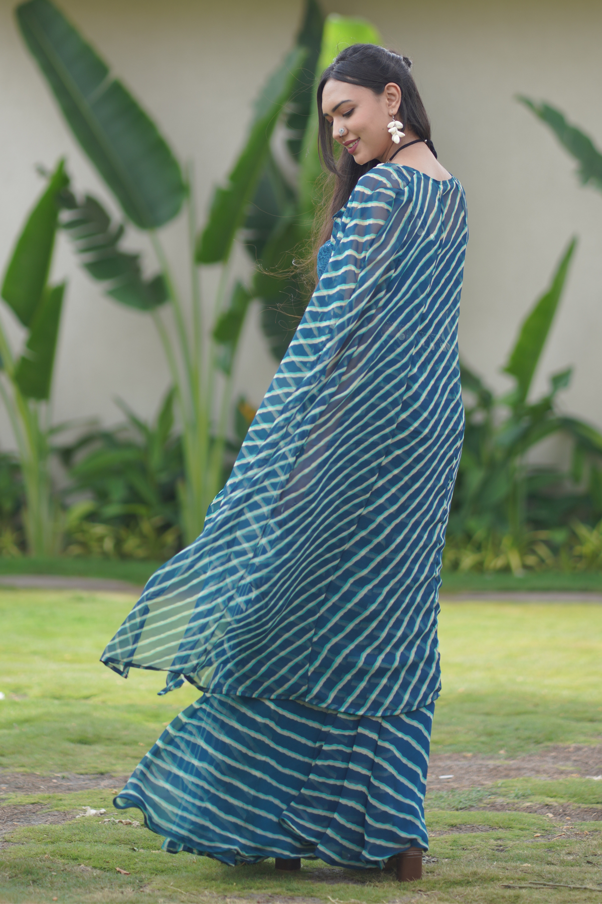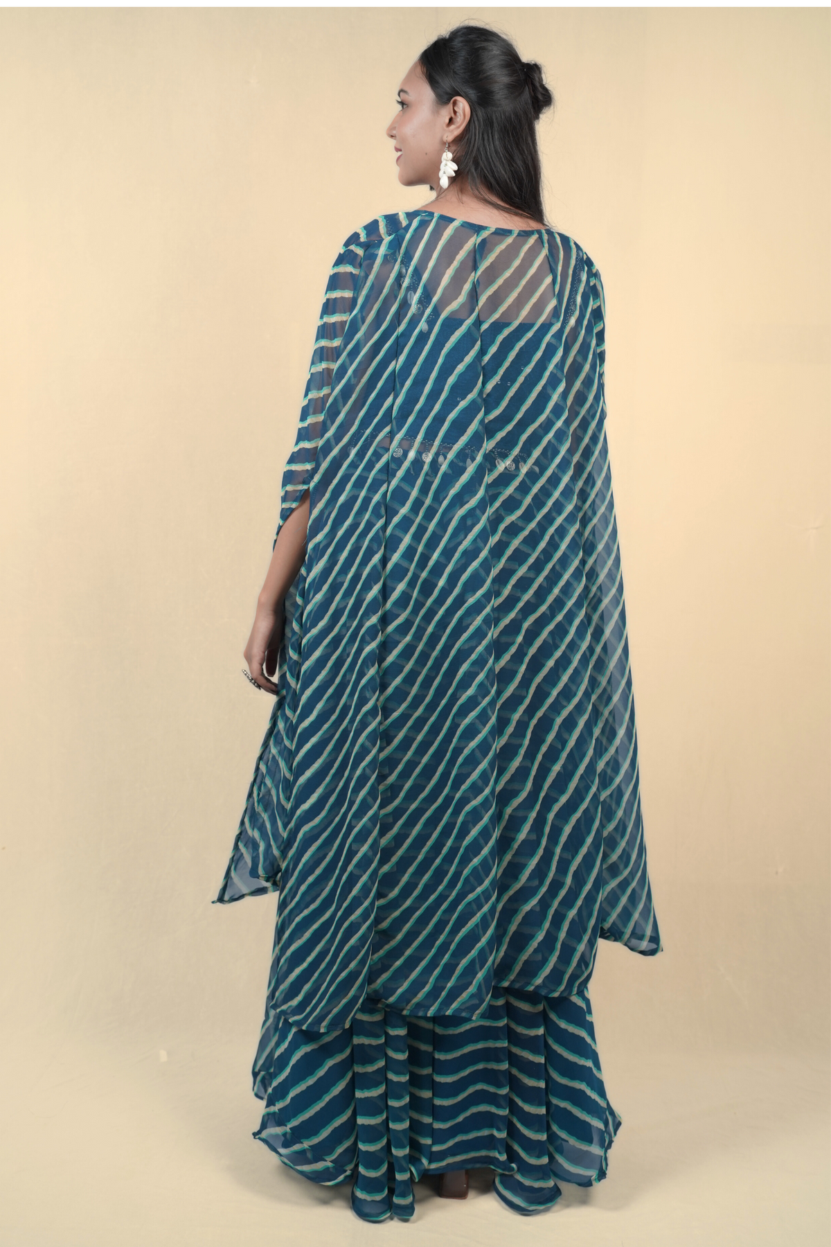 This Sheesh Lehriya Mirror Trio Set features a vibrant 3-piece ensemble adorned with intricate mirror work meticulously crafted over a bright lehriya dye pattern. The combination of traditional mirror embellishments and the dynamic lehriya print creates a striking visual appeal, making it an excellent choice for festive occasions. Designed to elevate your style during Garba nights, Diwali celebrations, or pre-wedding functions, this set blends cultural richness with contemporary elegance, ensuring you stand out with both grace and vibrancy.