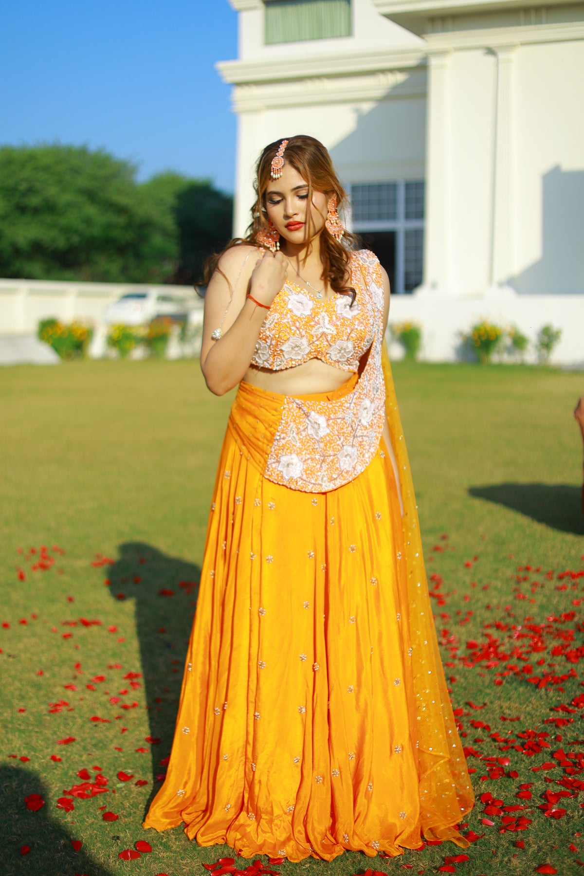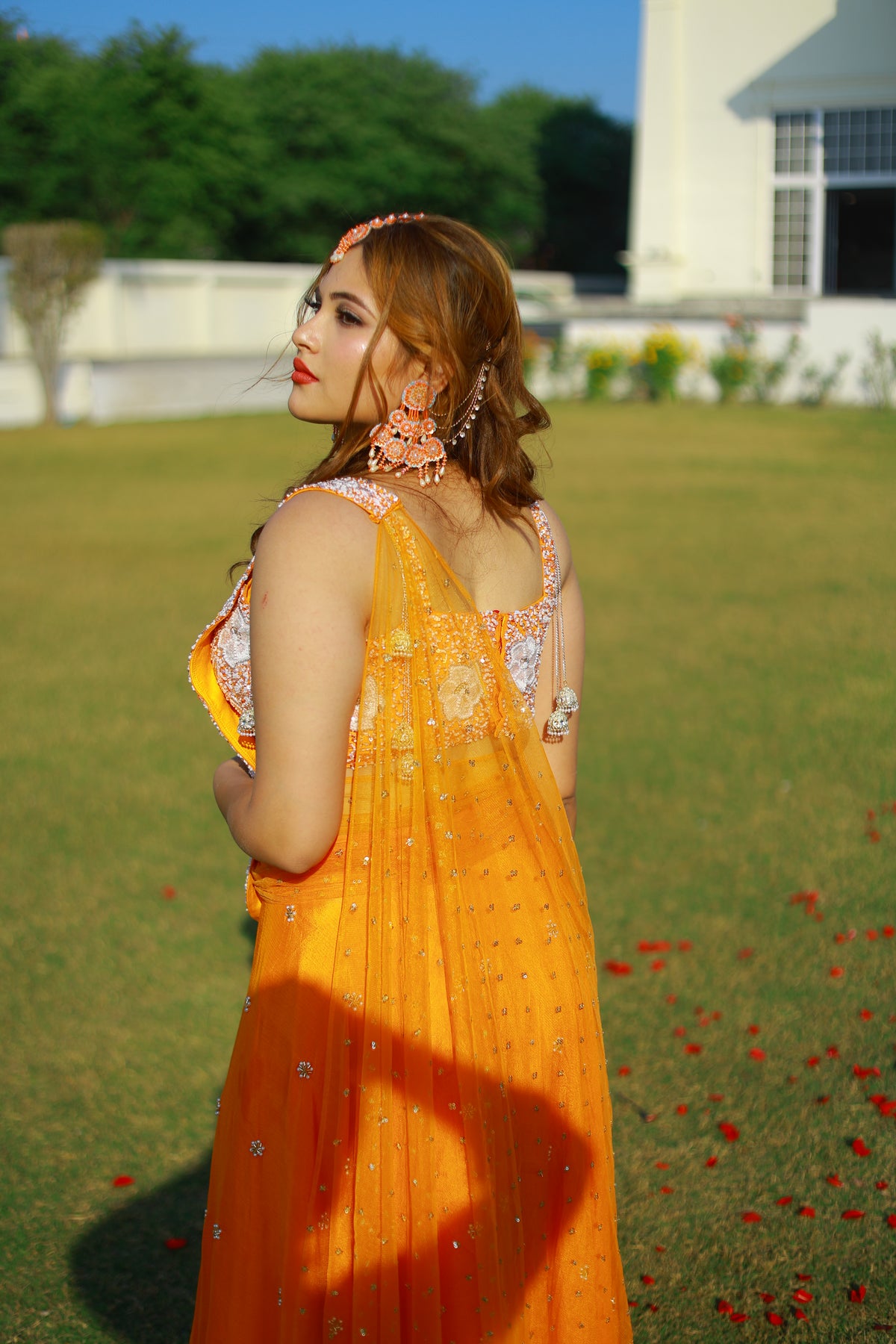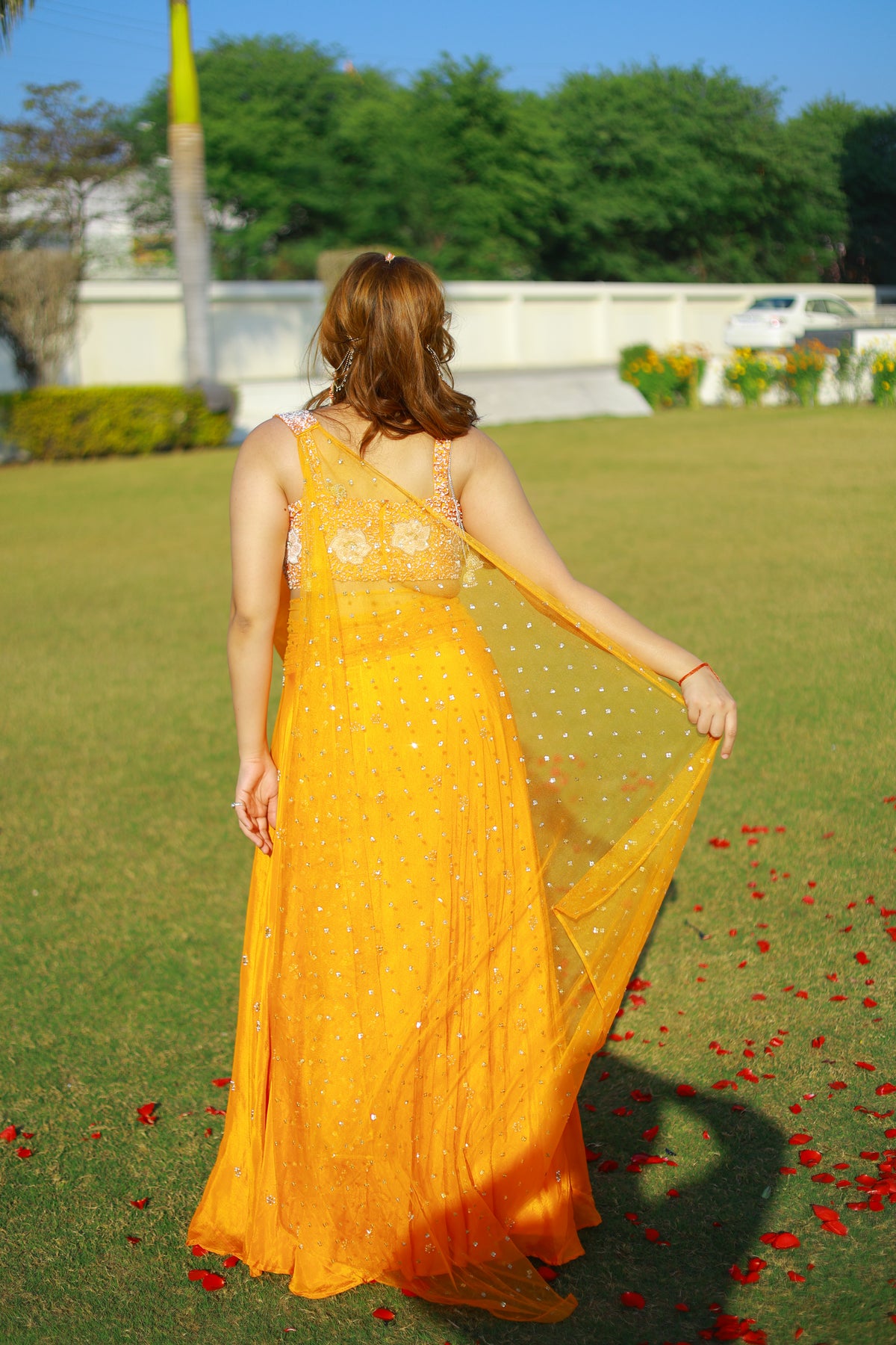 Perfect for haldi celebrations, daytime weddings, festive gatherings, and joyful occasions, Saffron Glow embodies the spirit of Bloom — where colour tells a story of celebration and elegance.